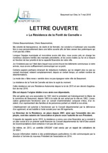 Retour à la page précédente Lettre ouverte – résidence Forêt de Carnelle Publié le 9 mai 2018 Lettre ouverte – résidence Forêt de Carnelle Partager ce contenu... via Facebook via Twitter par mail