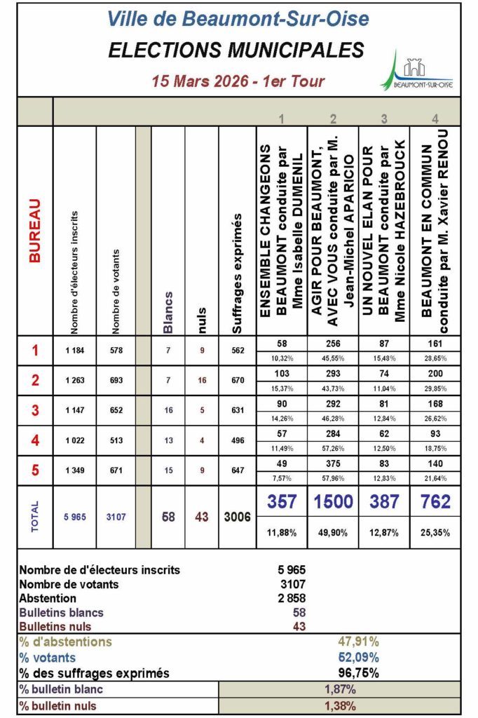 Résultats du premier tour des élections municipales – Dimanche 15 mars 2026